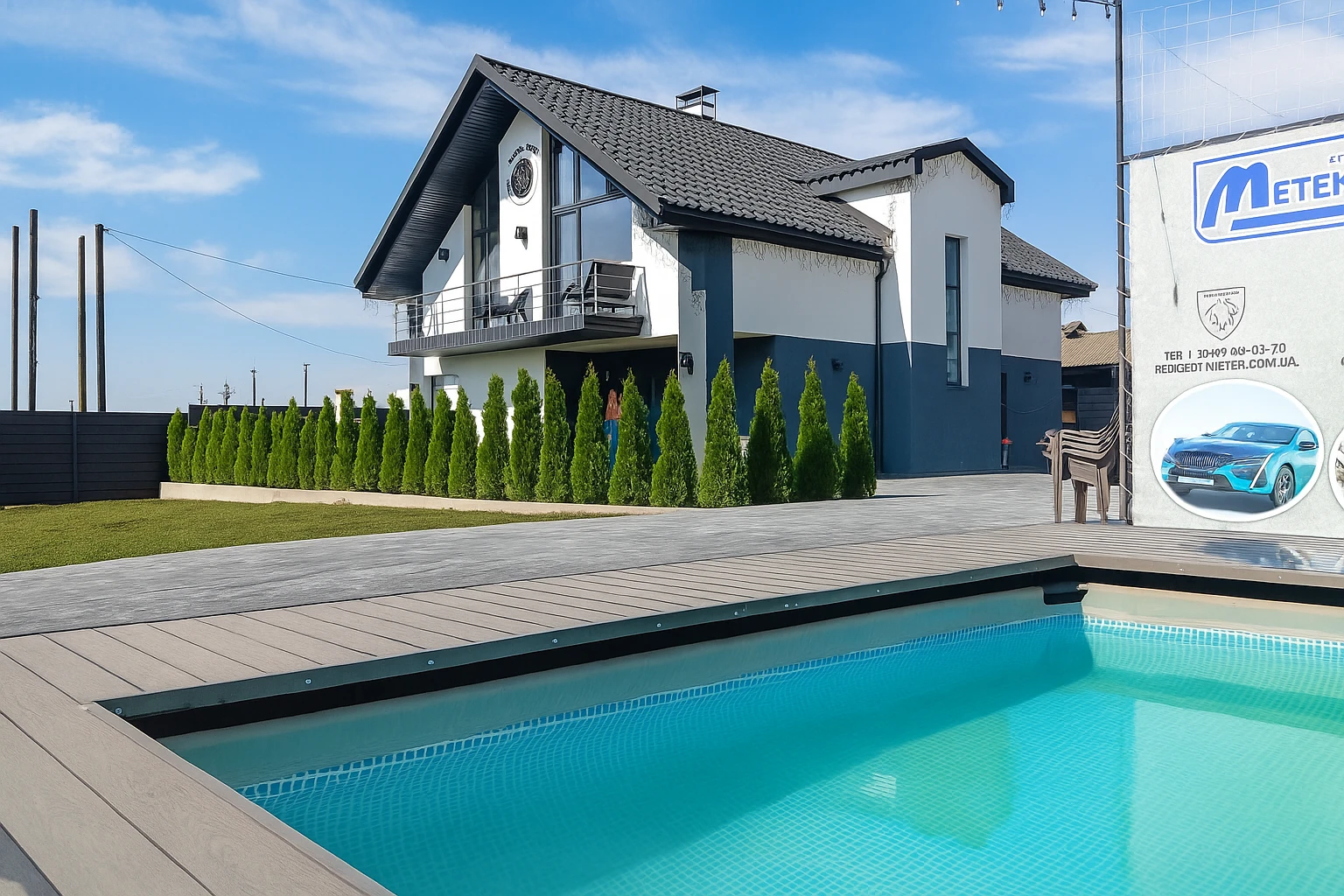 Пориньте у світ відпочинку та комфорту біля нашого великого басейну.
